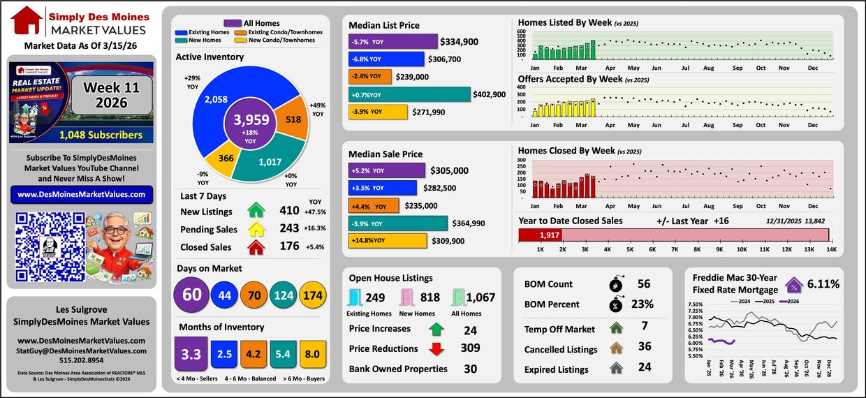 Tracking weekly real estate market trends is extremely important to keep track of the Des Moines and Central Iowa real estate market. Stop here every week to review the most current weekly dashboard and also review past weeks market information.